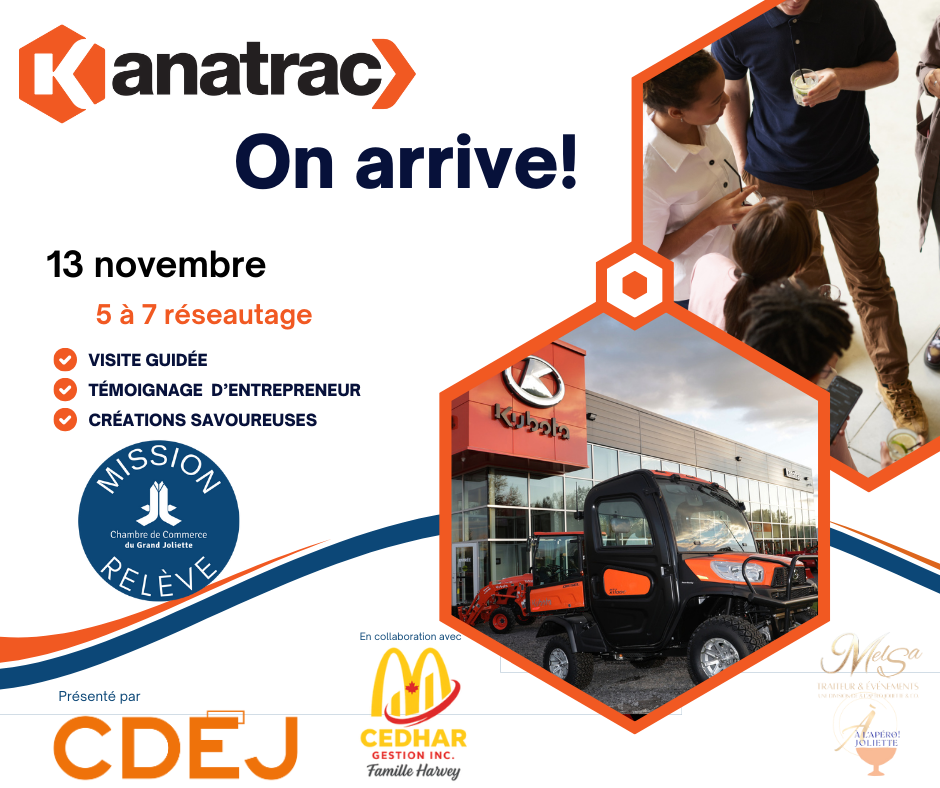 Connue pour ses tracteurs et side-by-side Kubota, l’équipe de Kanatrac, présenté par la CDÉJ, en collaboration avec Cedhar Gestion, nous accueille dans ses nouveaux locaux pour une expérience à la fois gourmande et inspirante.